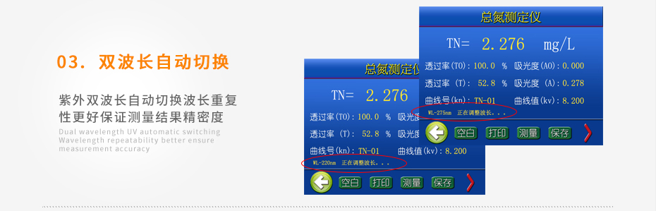 紫外雙波長自動切換,波長重復性更好,保證測量結果精密度;