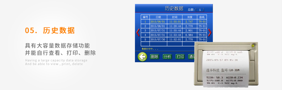 可打印當前數據及存儲的歷史數據;