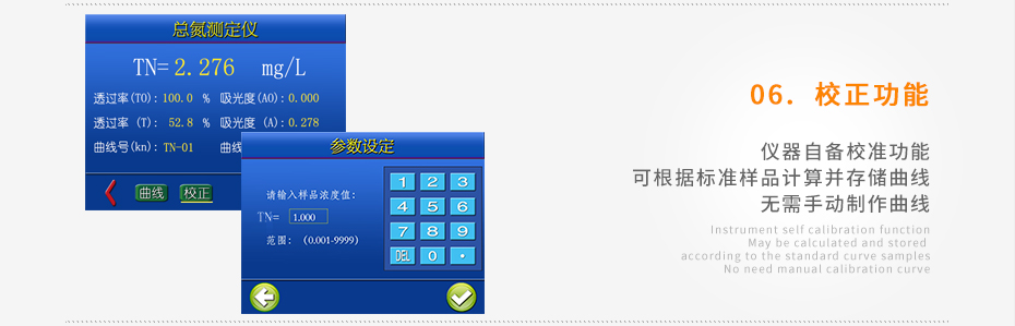 儀器自備校準功能,可根據標準樣品計算并存儲曲線,無需手動制作曲線;